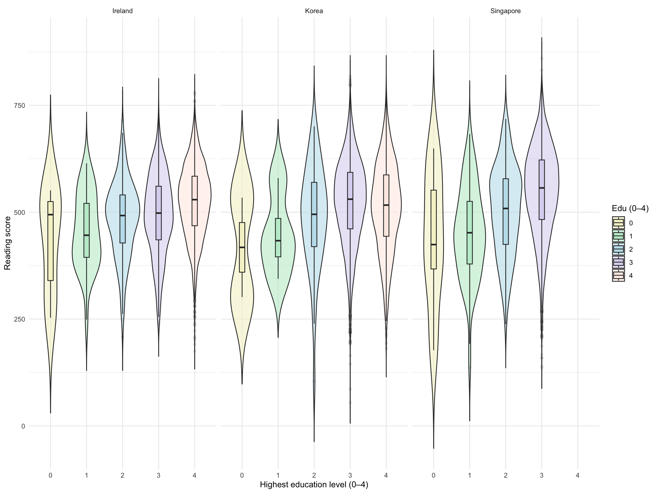 labs(x = "Highest education level (0–4)", y = "Reading score", fill = "Edu (0–4)") +